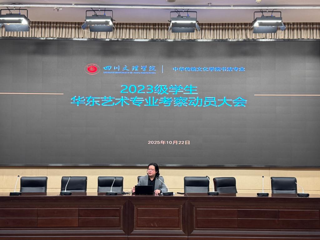 10月22日,我院在学术报告A厅召开2023级书法学专业艺术考察动员会。院长刘承川主讲,党委副书记(主持工作)秦静、副院长熊明川,以及教科办、教研室负责人和带队教师、全体2023级书法学专业学生参会。