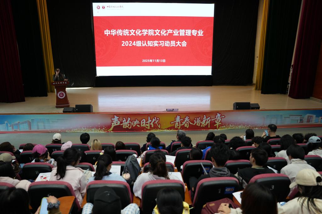 11月13日,我院2024级文化产业管理专业认知实习动员大会在学术报告厅举行。党委副书记(主持工作)秦静、院长刘承川、党委副书记张桢、实习带队教师、校内指导教师及2024级全体学生参会。会议由专业负责人马菱苓主持。
