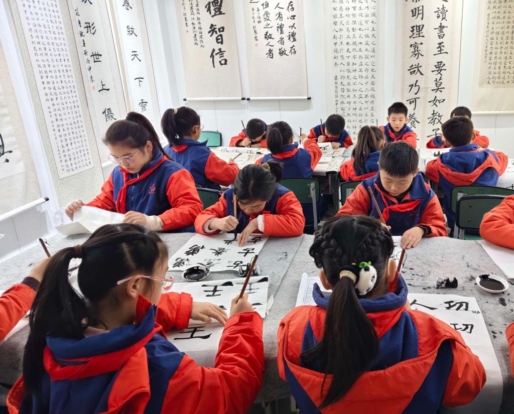 11月19日,我院组织80余名书法学专业学生赴通川区七小新锦学校,开展“实践赋能成长——书法美术一线教学示范与见习研讨”活动。