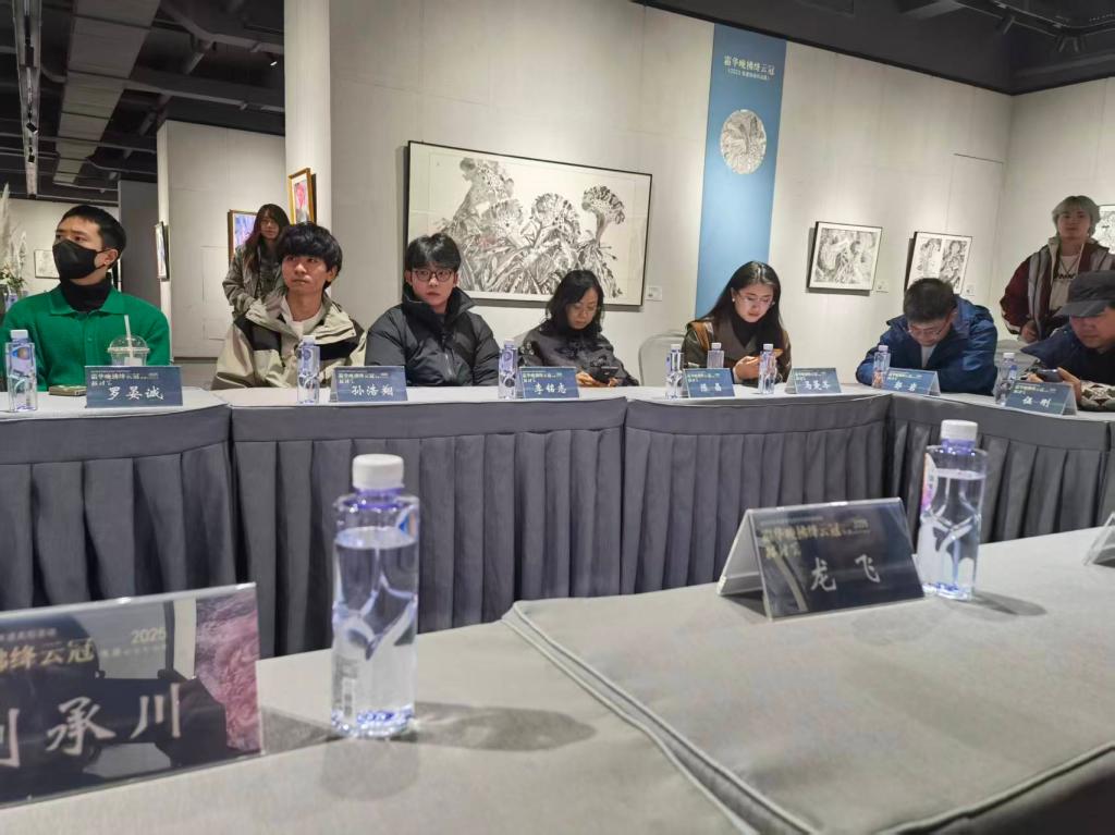 随后,展览专题研讨会在美术馆召开。与会嘉宾龙飞、黄越以及中华传统文化学院书法教研室、文化产业管理教研室等艺术家、教师围绕“青年艺术家如何建立地域文化认同”及“高校美育如何联动地方艺术资源”等关键议题进行了深入探讨。张建则结合自身实践,分享了其“从生活观察到艺术提炼”的完整创作路径。