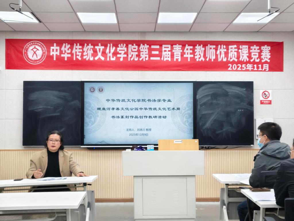 12月9日,我院在艺术传媒楼3021微格教室举行“鲤鱼河孝善文化公园中华传统文化艺术周”书法篆刻作品创作教研活动。院长刘承川主持,承担创作任务的60余名书法学专业师生参会。