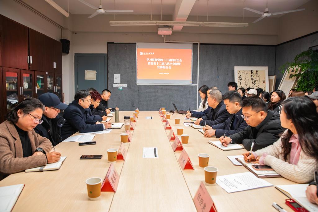 12月30日,校长侯忠明为师生宣讲党的二十届四中全会暨省委十二届八次全会精神。党办校办、发展规划处、审计处、校友办、音乐与演艺学院负责人和中华传统文化学院部分师生到场聆听。
