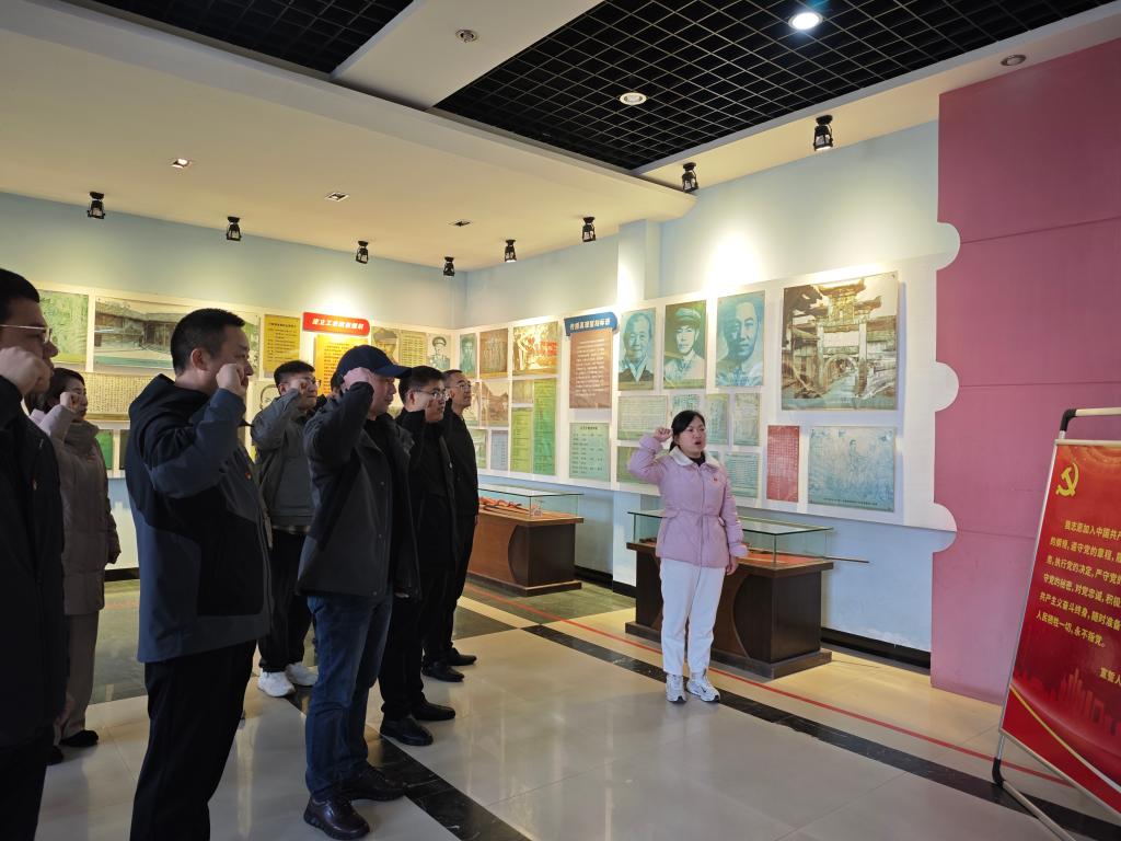 随后,党员们走进“中国红色第一街”——列宁街:斧头劈开新世界,镰刀割断旧乾坤”历经90余年风雨的巨幅石刻标语依旧清晰。在红军陈列馆,大家在《中国共产党十大政纲》石刻原件、川陕苏区货币等珍贵文物前驻足凝视,重温红四方面军浴血奋战的峥嵘岁月。鲜红党旗下,全体党员肃立,高举右拳,重温入党誓词,铿锵誓言回荡在老街上空。